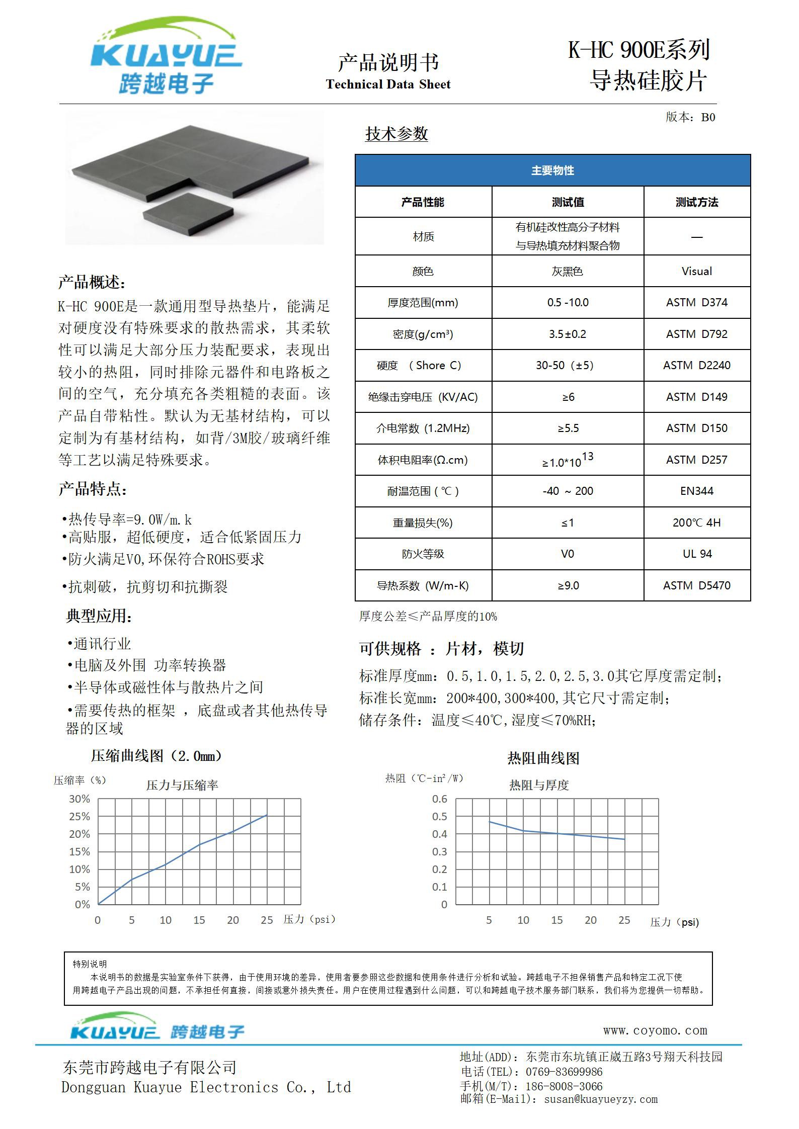 K-HC 900E系列导热硅胶片 TDS