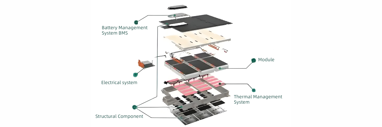 The liquid cooling system is dominant: the heat dissipation aluminum tube (or cold plate) and coolant (water and glycol mixture) wrap the battery pack through an S-shaped layout, and the thermally conductive silicone sheet fills the gap between the cell and the aluminum tube, eliminating air thermal resistance.