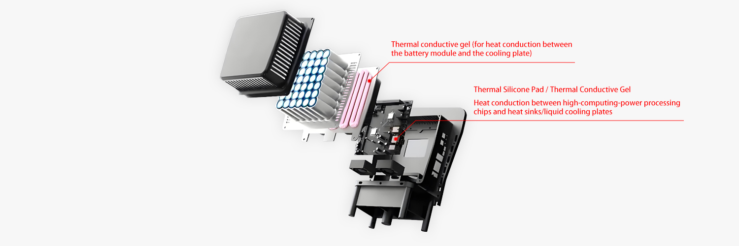 3. Heat dissipation of high-density battery modules: thermally conductive silicone sheet + thermal conductive gel