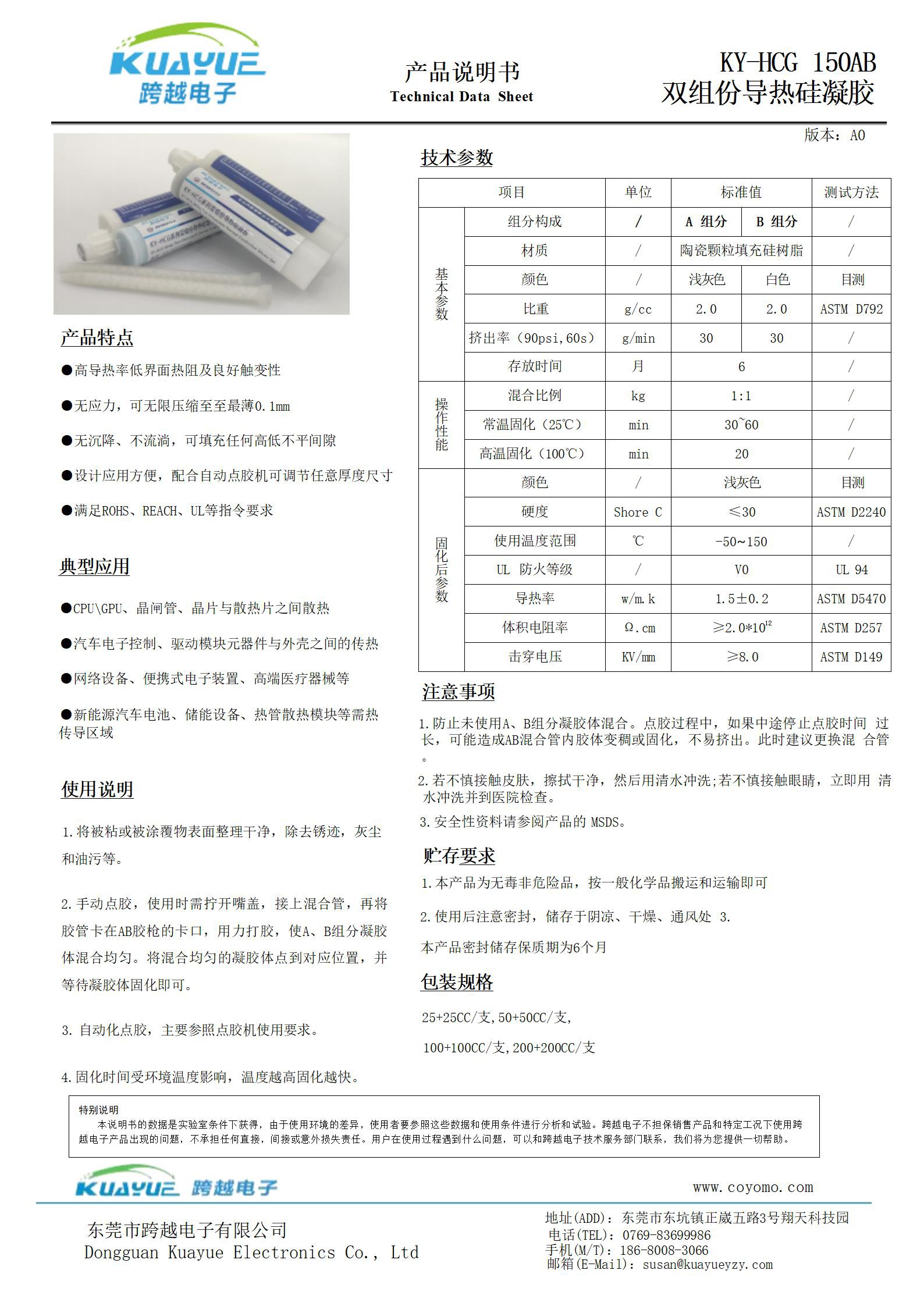 KY-HCG 150AB 双组份导热硅凝胶