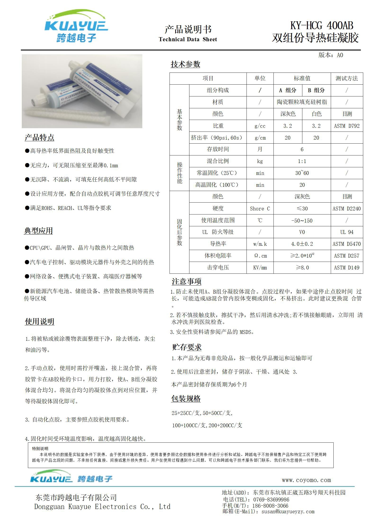 KY-HCG 400AB 双组份导热硅凝胶