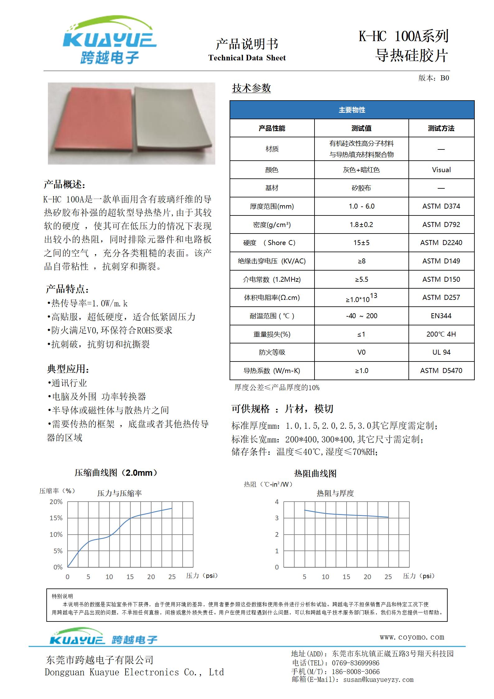 K-HC 100A系列导热硅胶片 TDS
