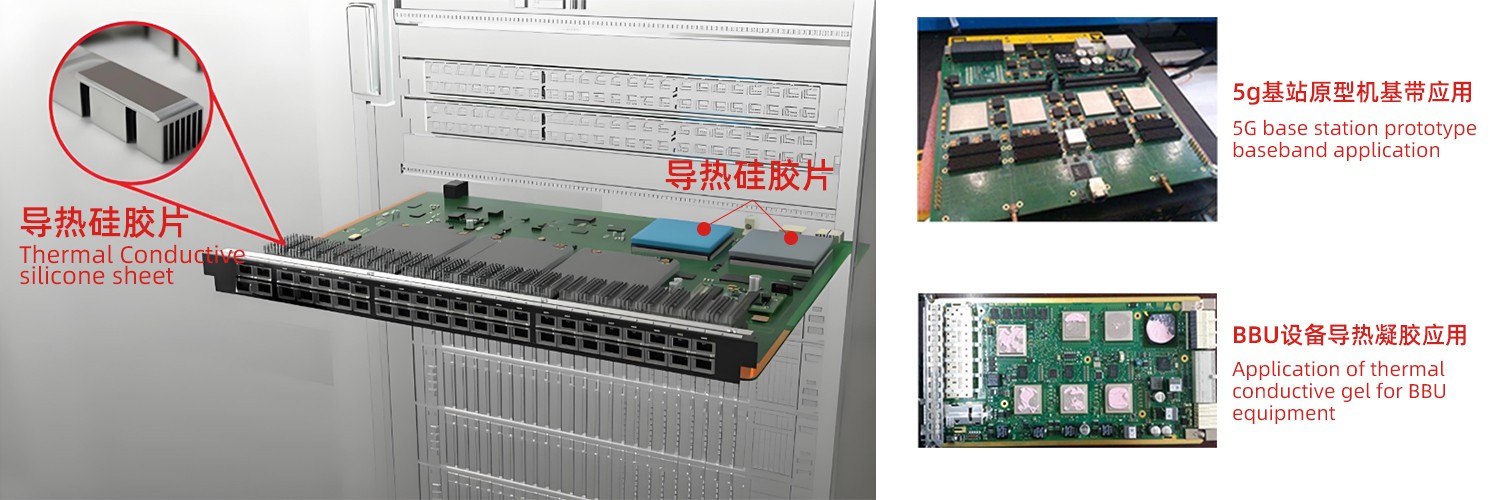 在通讯网络设备中,导热材料的应用方案需根据设备功耗、热流密度、结构设计及成本等因素综合制定,以下是具体应用方案及分析: