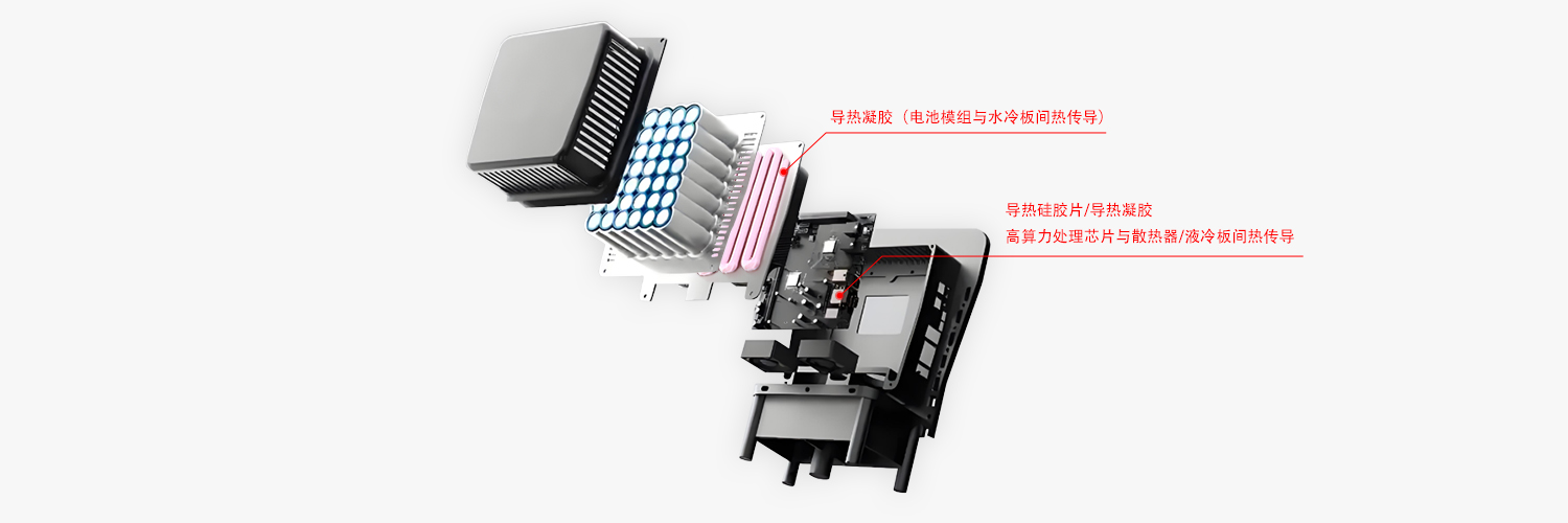 智能驾驶控制器、AGV机器人主控板等高算力模块 | 导热凝胶+液冷系统 | 高效散热 |